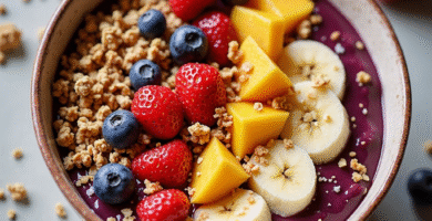 Receta de Acai Bowl con Frutas Tropicales y Granola de Brasil