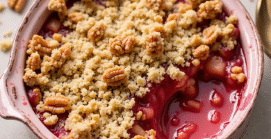 Receta de Rhubarb Crumble con Toppings de Nuez y Mantequilla de Almendra