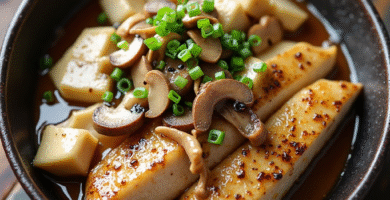 Receta de Trucha al Sake con Champiñones y Tofu para Toyama, Japón