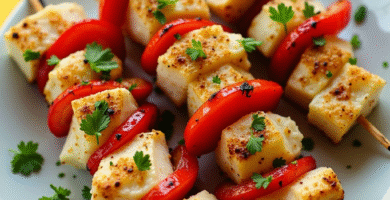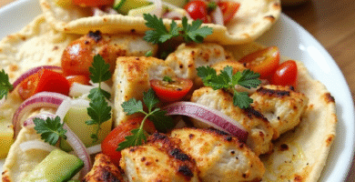Receta de Souvlaki de Pollo con Salsas Chipriotas