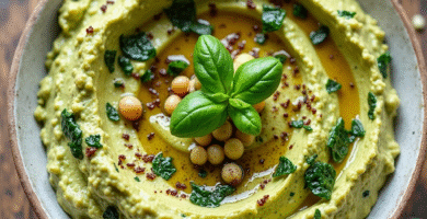 Receta de Hummus Bajo con Espinacas y Albahaca para Netanya, Israel