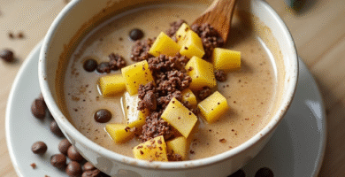 Receta de Postre de Café Timoreño con Mantequilla de Coco y Frutas Tropicales
