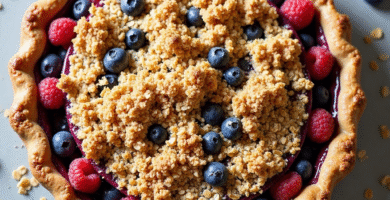 Receta de Tarta de Arándanos y Frambuesas con Crumble de Avena