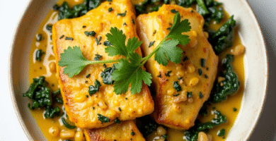 Receta de Pescado del Lago Victoria con Espinacas y Coco