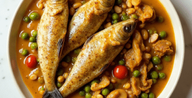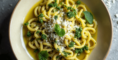 Receta de Garudhiya con Pasta al Pesto (Maldivas Fusion)