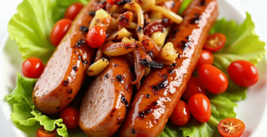 Receta de Bratwurst al Curry con Ensalada de Lechuga y Tomates Frescos
