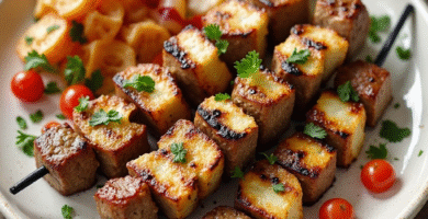 Receta de Souvlaki al estilo de Chipre, con Halloumi