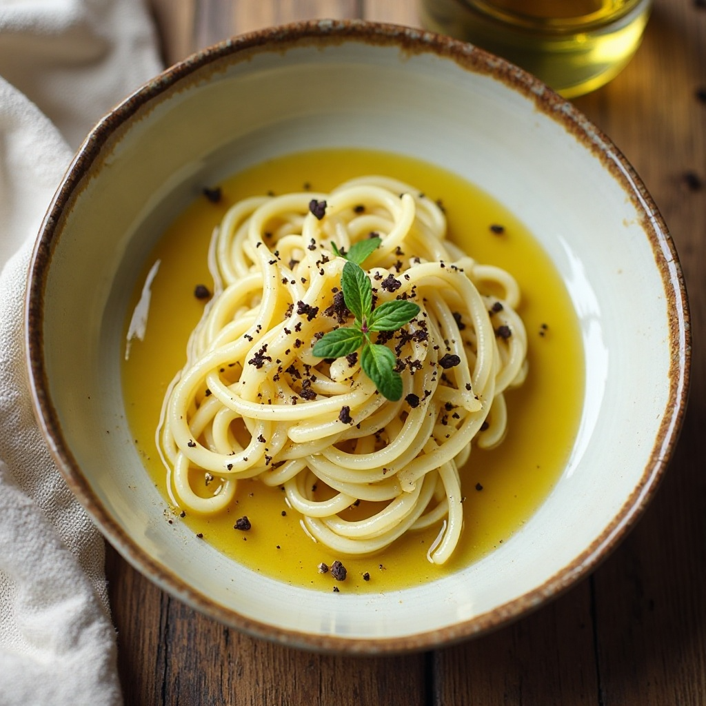 En Spello, una ciudad encantadora en la región Umbria de Italia, el aglio e olio (aceite de ajo) es un plato básico que se puede disfrutar en cualquier momento del día. Esta versión especial utiliza queso pecorino, un producto emblemático de la zona, para darle un toque distintivo a este clásico italiano.