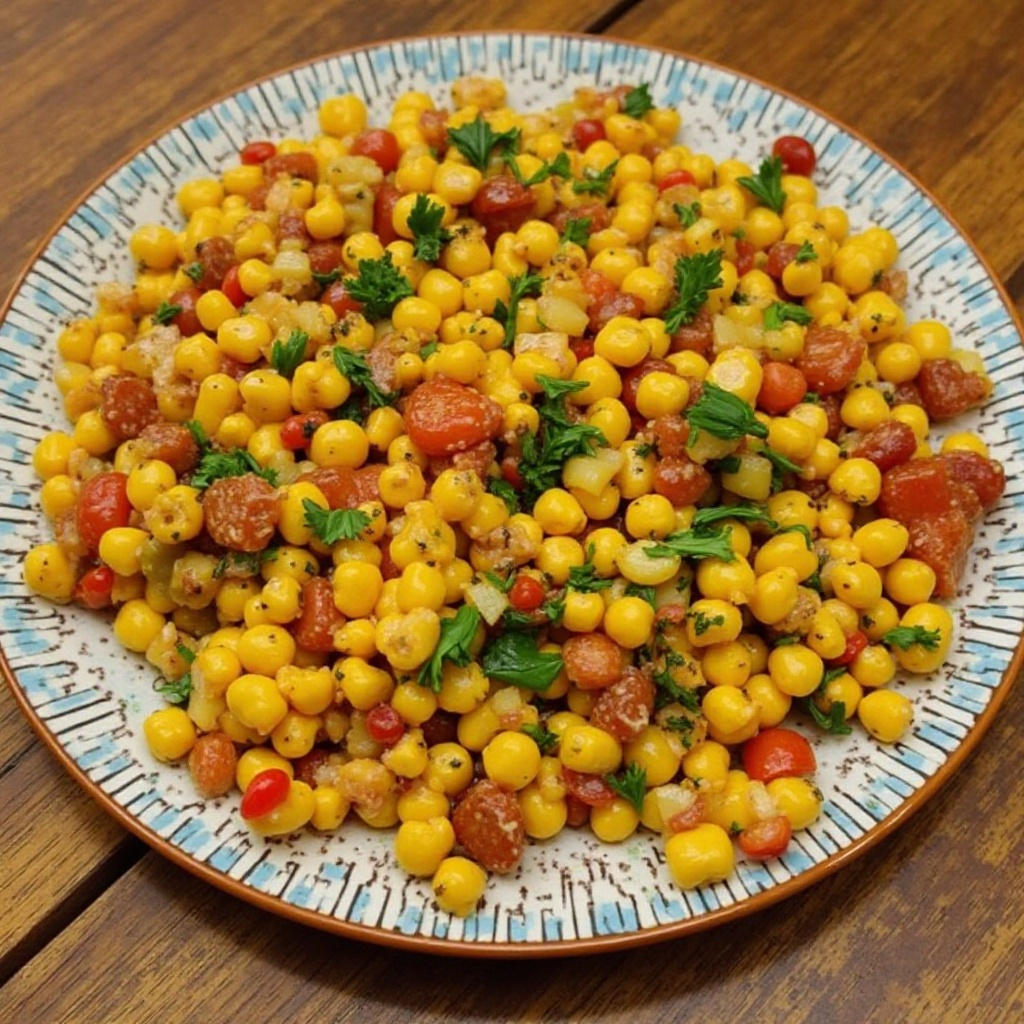 - Sigue cocinando a fuego medio por unos 10 minutos, revolviendo ocasionalmente para que el maíz se ablande y adquiera un sabor delicioso y ligeramente salado.