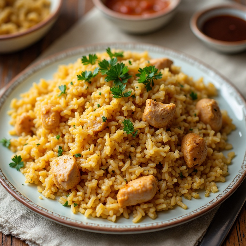 Este plato es rico en carbohidratos complejos y proteínas del pollo, lo cual es ideal para una dieta equilibrada. Sin embargo, debido a la cantidad de especias y aceite utilizado, es importante moderar su consumo. Puedes ajustar la cantidad de aceite o seleccionar alternativas saludables sin afectar el sabor.