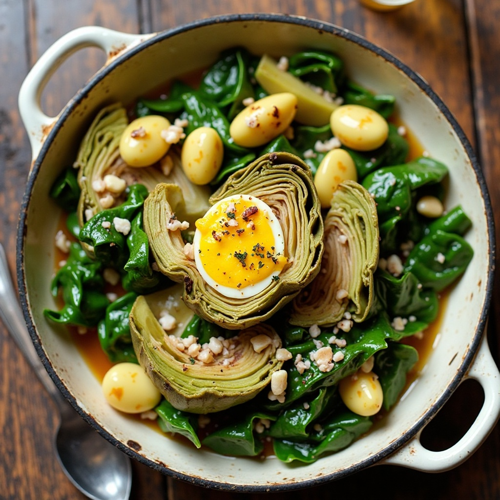 Esta receta es baja en calorías y rica en fibra gracias a las alcachofas y espinacas, lo que promueve un sistema digestivo saludable. La inclusión de patatas proporciona energía, mientras que los ajos aportan antioxidantes. Ideal para aquellos que buscan una comida equilibrada y deliciosa.