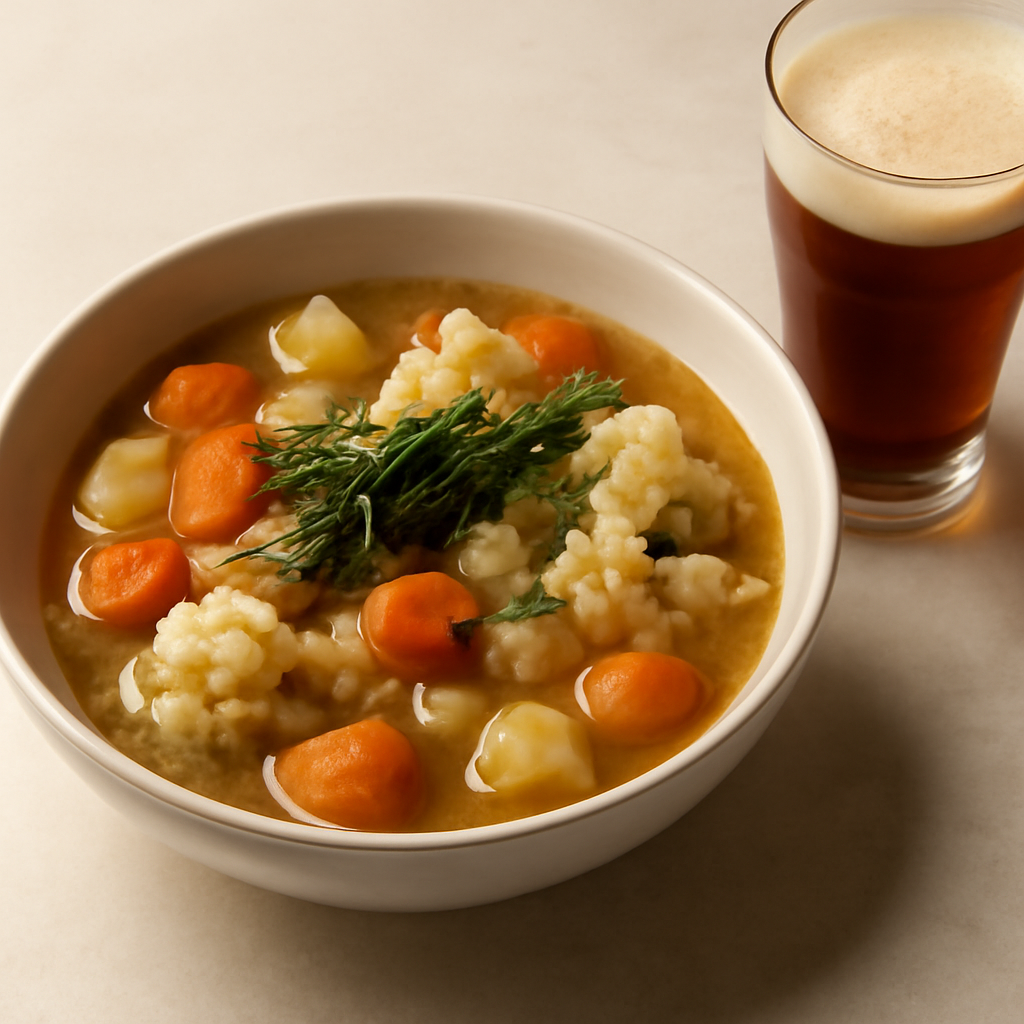 Thetford es conocida por su rica tradición cervecera, y esta receta ofrece una forma deliciosa de disfrutar de la esencia local. La cerveza ale inglesa, con su distintivo sabor a malta, será el protagonista, aportando un toque único a este caldo reconfortante. Perfecto para los días fríos, este plato es una delicia para el paladar.