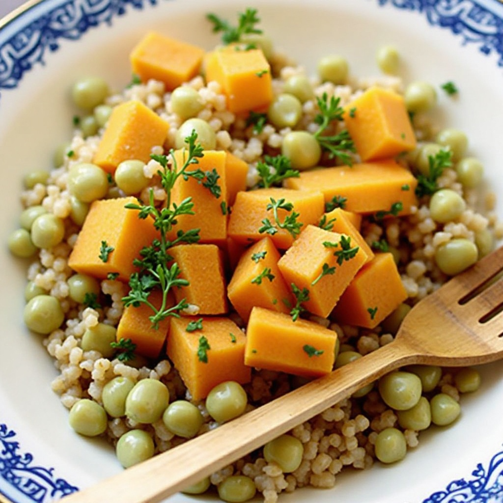 - Agrega los cubos de batata a la mezcla y cocina por unos 5 minutos, revolviendo ocasionalmente para que se cocinen uniformemente.