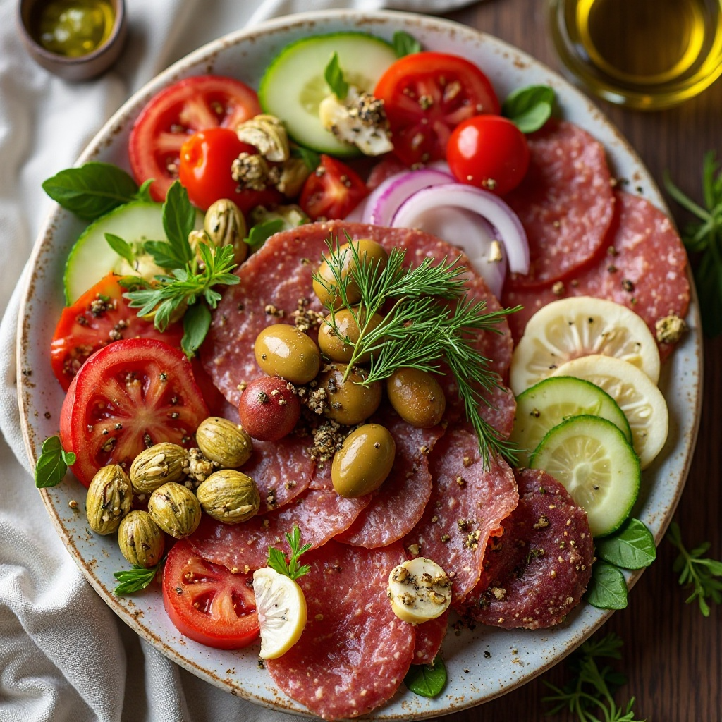 Este plato es una excelente opción saludable debido a sus ingredientes frescos y naturales. El salumi puede ser moderadamente alto en grasas y sodio, pero eligiendo productos locales con menos curaciones, se pueden minimizar estos efectos. La inclusión de tomates, pepino y aceitunas proporciona vitaminas y minerales esenciales, mientras que el aceite de oliva virgen extra es rico en ácidos grasos saludables.