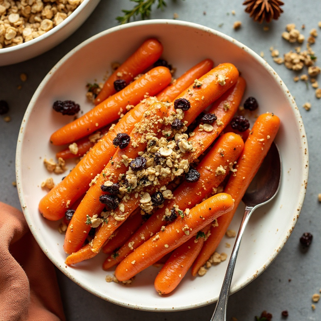 Receta de Apple Cider Glazed Carrots con Crumble Topping (Carrots with Apple Cider Glaze and Crumble)