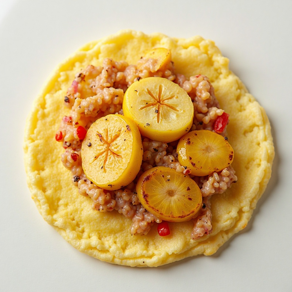 La arepa es un pan tradicional venezolano, que se ha convertido en el pilar culinario de muchas comidas. La versión de plátano maduro agrega una textura y sabor únicos. Este plato es perfecto para un almuerzo rápido o una cena ligera, con la opción de rellenarlo con queso, huevo duro, carne, o simplemente servirlo solo con una guarnición.