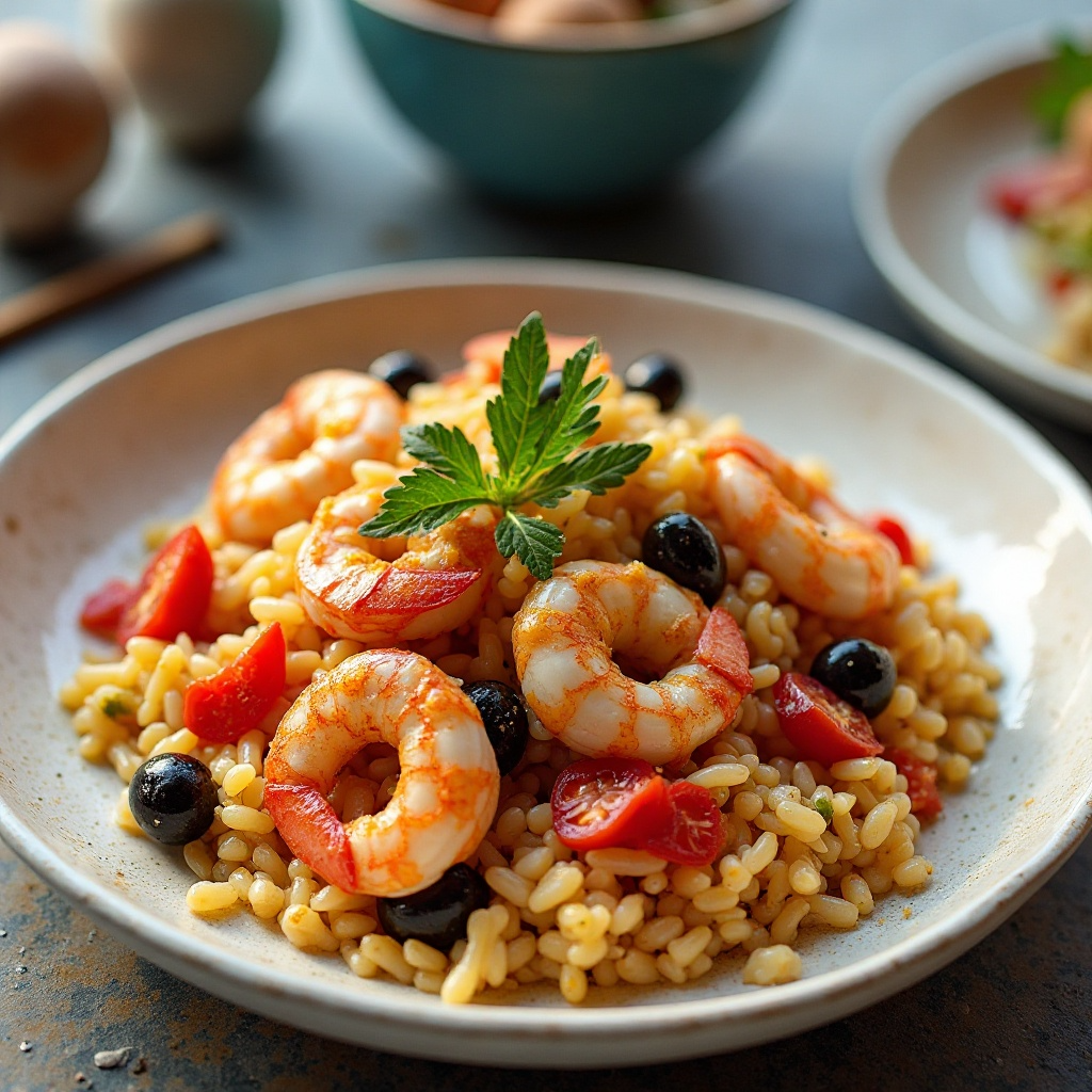 - Agrega las aceitunas y el perejil fresco. Revuelve suavemente para integrar todos los ingredientes en el arroz.