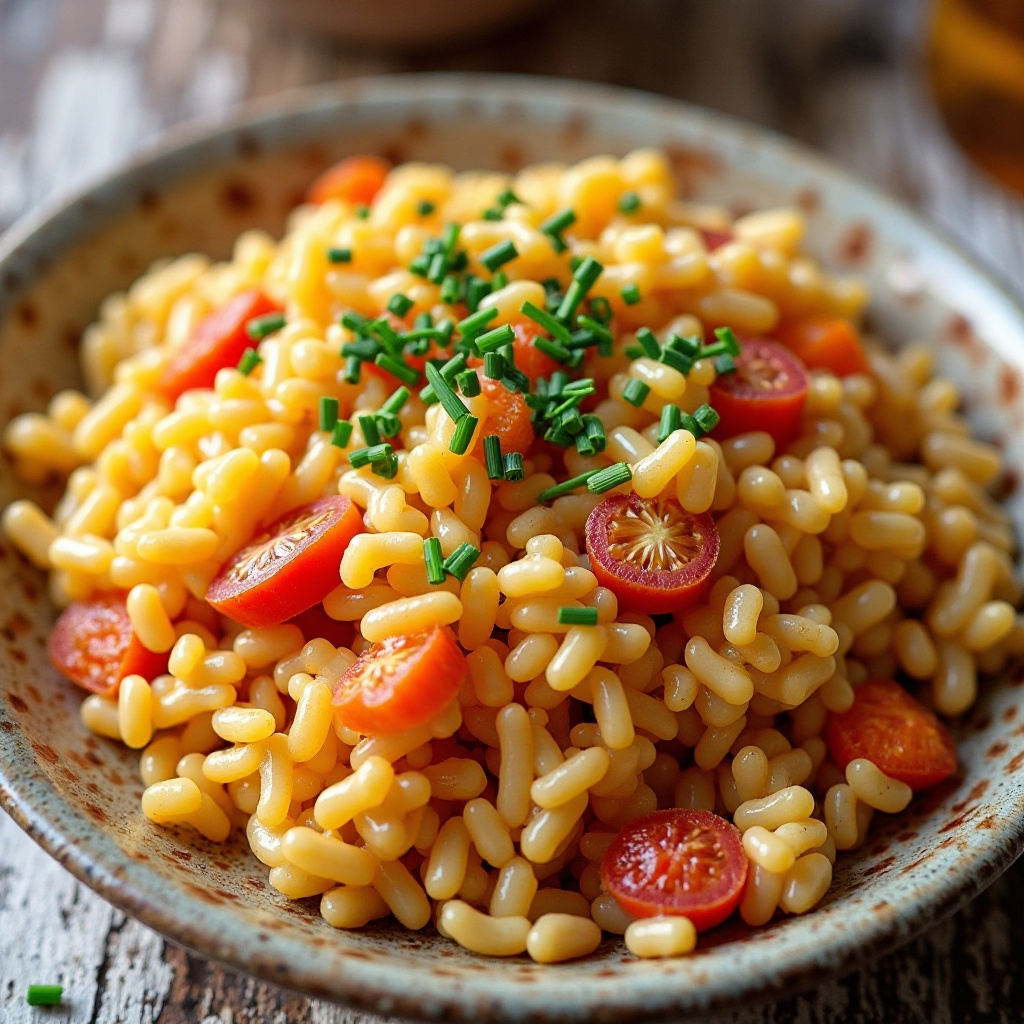 - Sirve caliente, decorado con cebollino fresco picado para añadir un toque fresco y aromático.