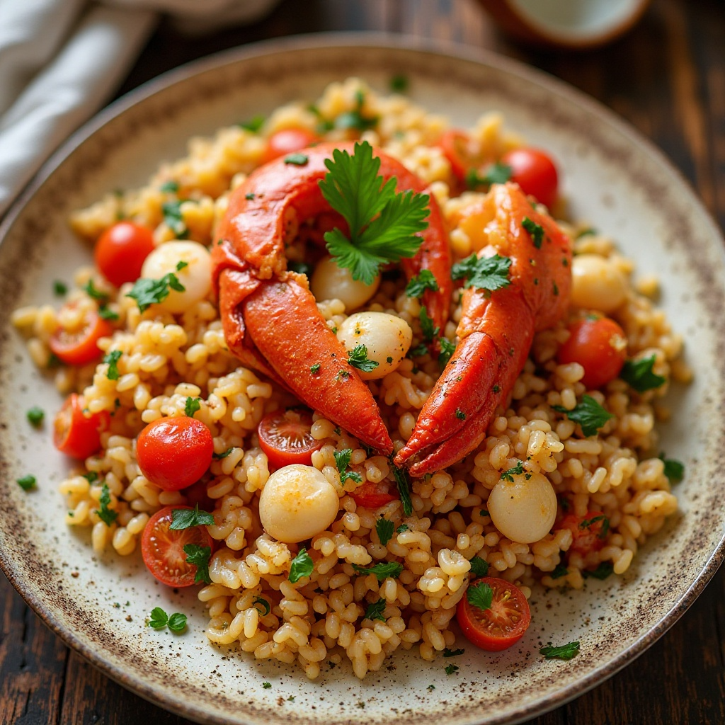 Este arroz es una fuente rica en proteínas debido a los bogavantes y a los granos de arroz calasín. La combinación de vegetales también aporta vitaminas y minerales esenciales. Para mantener un equilibrio saludable, puedes optar por usar caldo de pollo en lugar de mariscos si buscas una opción más ligera. También es una buena idea incluir esta receta en un menú equilibrado que contenga proteínas magras y una variedad de frutas y verduras.