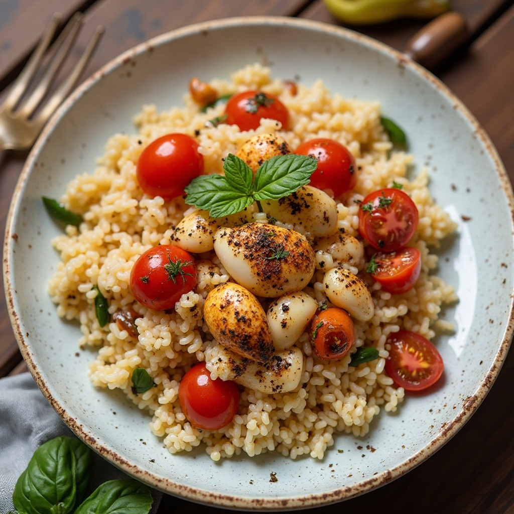 El uso de conchas de mar como ingrediente en esta receta proporciona un alto contenido de proteínas y minerales esenciales. Es importante asegurarse de que las conchas sean recolectadas de manera sostenible para proteger el ecosistema marino. Además, los tomates cherry aportan vitaminas y fibra.