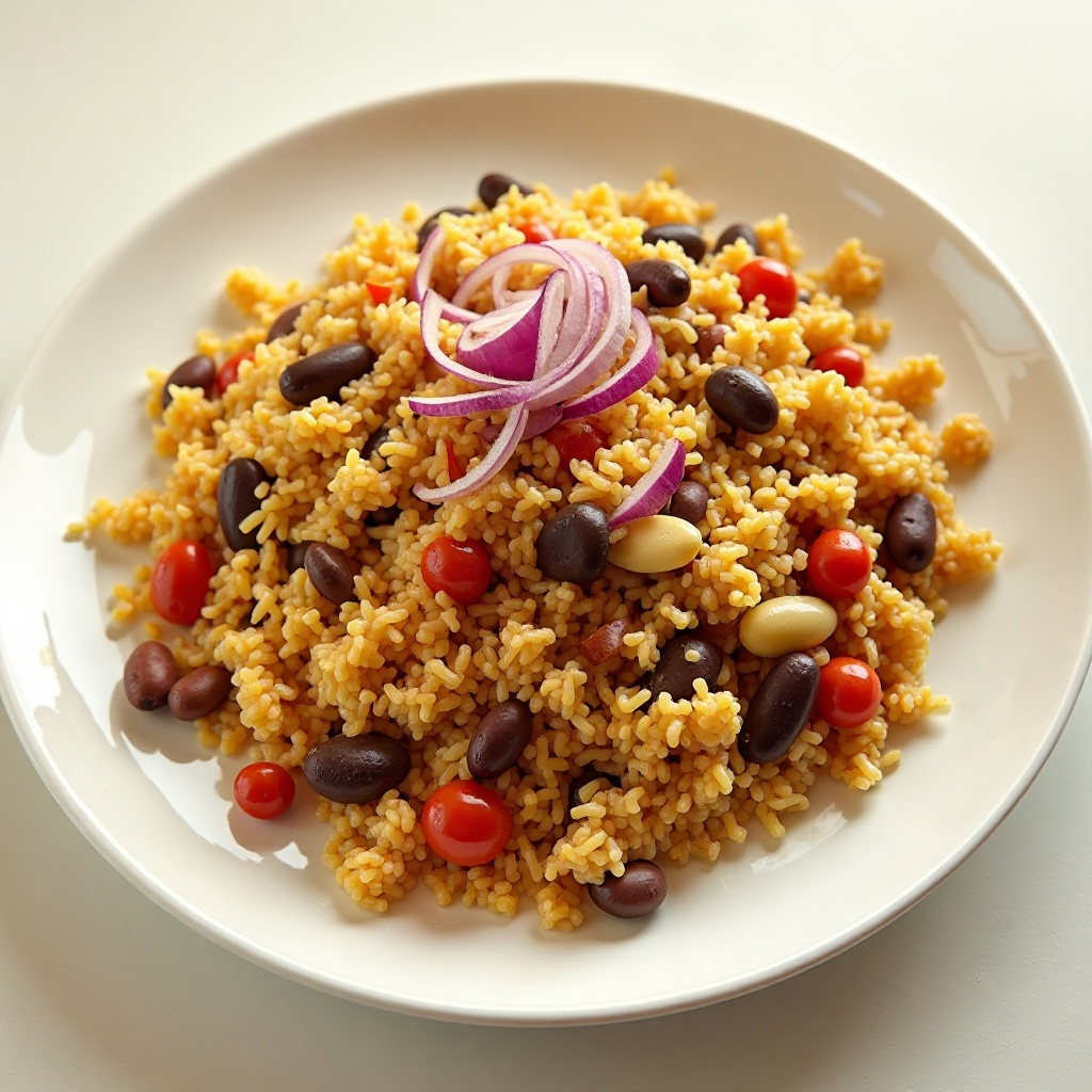 Este plato es una fuente rica de proteínas y fibra gracias a los guandú. El arroz aporta energía, mientras que el pollo proporciona vitaminas B y hierro. Las verduras también aportan antioxidantes. Para una versión más ligera, considera reducir la cantidad de aceite usado en la cocción.