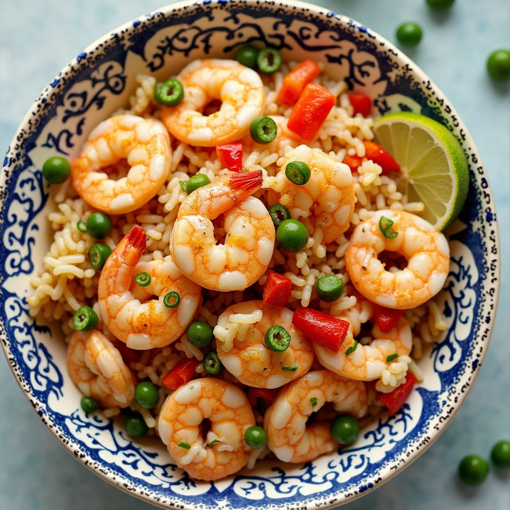 - Una vez el arroz esté listo, agrega los langostinos y el jugo de limón a la mezcla de arroz. Mezcla bien para combinar todos los sabores y ajusta el salado si es necesario.