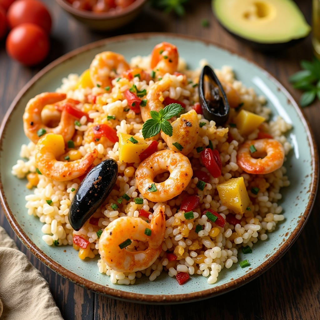 Este plato es rico en proteínas y contiene una variedad de nutrientes esenciales provenientes de los mariscos. El uso de especias como el comino y el pimentón puede proporcionar beneficios adicionales debido a sus propiedades antioxidantes. Asegúrate de elegir mariscos frescos para garantizar la mejor calidad nutricional y sabor.