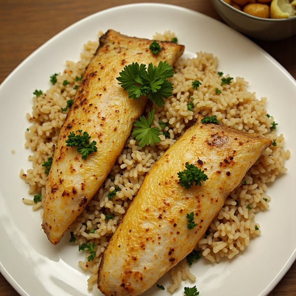 - Sirve el arroz con pescado, espolvoreando con perejil fresco.