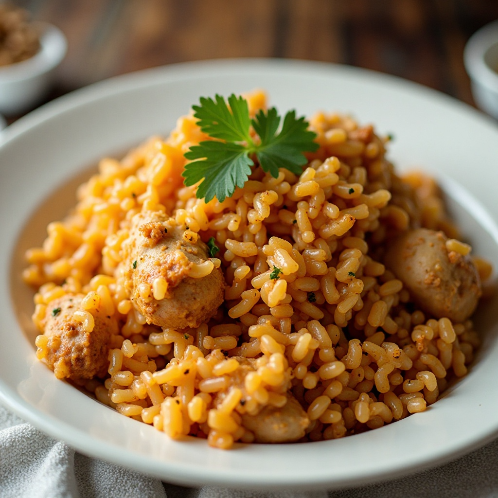 El Arroz con Pollo es una fuente de proteínas magras y carbohidratos integrales. El arroz integral contribuye con fibra y nutrientes esenciales. Si prefieres una versión más ligera, puedes reducir el aceite de oliva o usar un aceite de oliva más saludable. Asegúrate de cocinar el pollo completamente para una seguridad alimentaria adecuada.