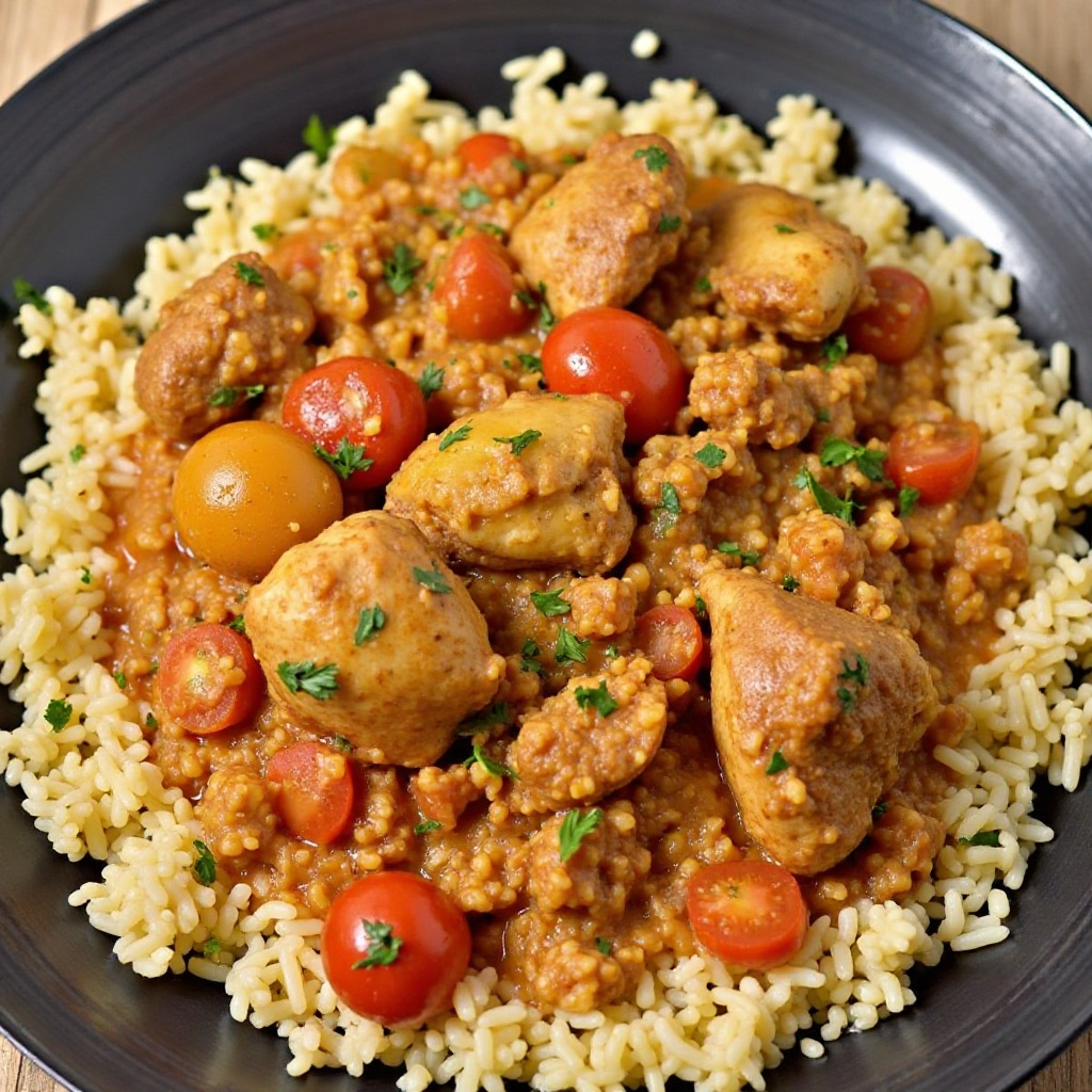Este plato es una fuente rica de proteínas y carbohidratos complejos. La incorporación de verduras como tomate, cebolla y pimiento verde añade vitaminas y antioxidantes. Para una versión más saludable, puedes optar por un pollo sin piel y usar menos aceite en la preparación.