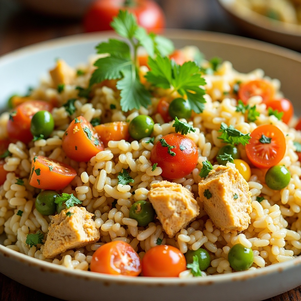 Este plato es una fuente rica de proteínas y vitaminas A y C gracias a los tomates cherry y el culantro. Para mantenerlo bajo en calorías, puedes optar por un arroz integral o cocinar el pollo con menos grasa. La elección de ingredientes locales puede aumentar la frescura y apoyar la economía local.