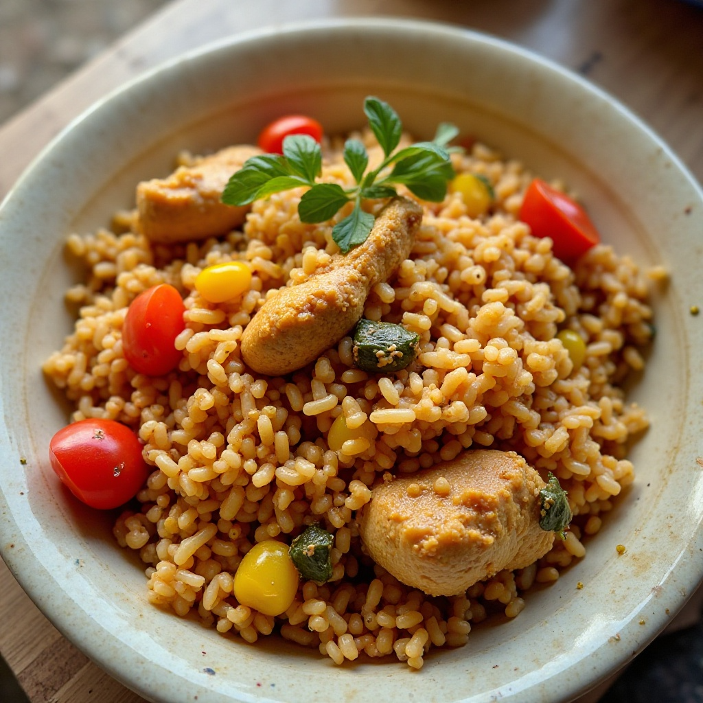 Este plato es rico en proteínas y carbohidratos, proporcionando energía equilibrada. La inclusión de vegetales frescos mejora su valor nutricional. Para un plato más saludable, considera reducir la cantidad de aceite o usar aceite de oliva virgen extra, y evita añadir azúcar o salsas con exceso de sal.