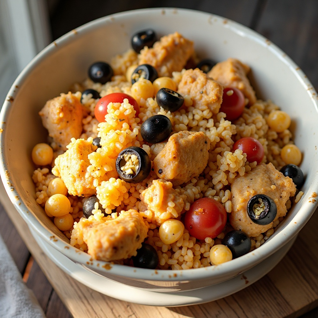El arroz con pollo es una comida balanceada, proporcionando proteínas del pollo y energía del arroz. La adición de aceitunas puede ofrecer beneficios cardiovasculares gracias a sus grasas saludables. Los huevos aportan proteínas adicionales y son una excelente fuente de vitaminas y minerales.