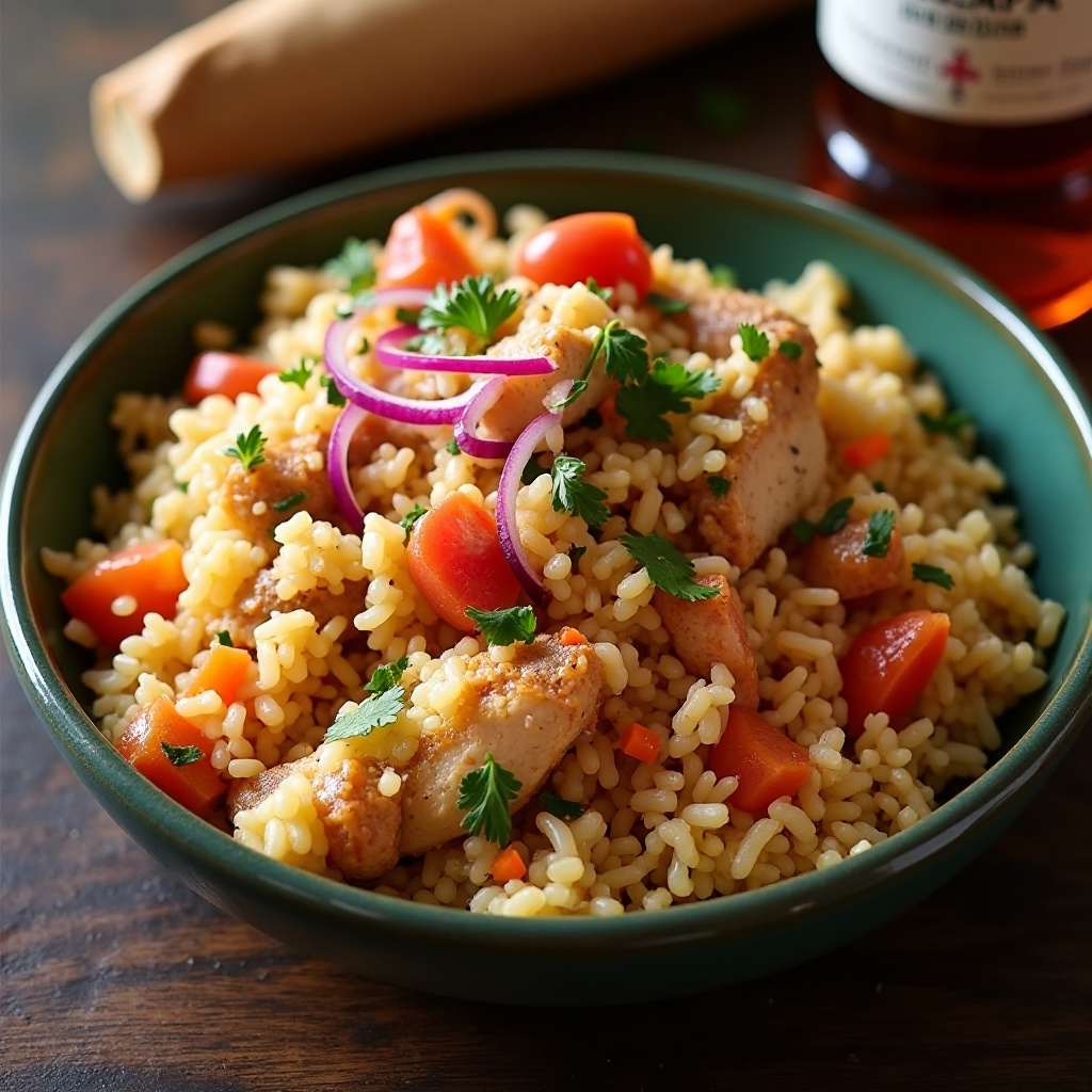 Este plato es una versión especial del clásico arroz con pollo, pero con un toque distintivo de la región de Zacapa en Guatemala, gracias al uso del ron Zacapa. Es perfecto para ocasiones especiales y celebra la rica cultura y sabores de esta parte de Centroamérica.