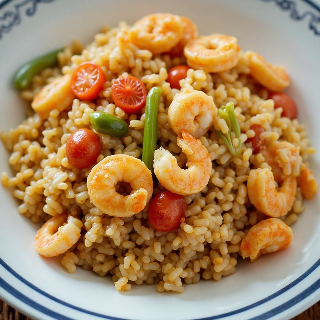 Este plato es una rica fuente de proteínas y grasas saludables. Los mariscos son conocidos por sus beneficios para la salud, como reducir el riesgo de enfermedades cardíacas. Además, el arroz es una fuente de carbohidratos complejos que proporciona energía sostenida. Recuerda que las porciones de mariscos deben ser moderadas debido a su contenido de colesterol y sodio.