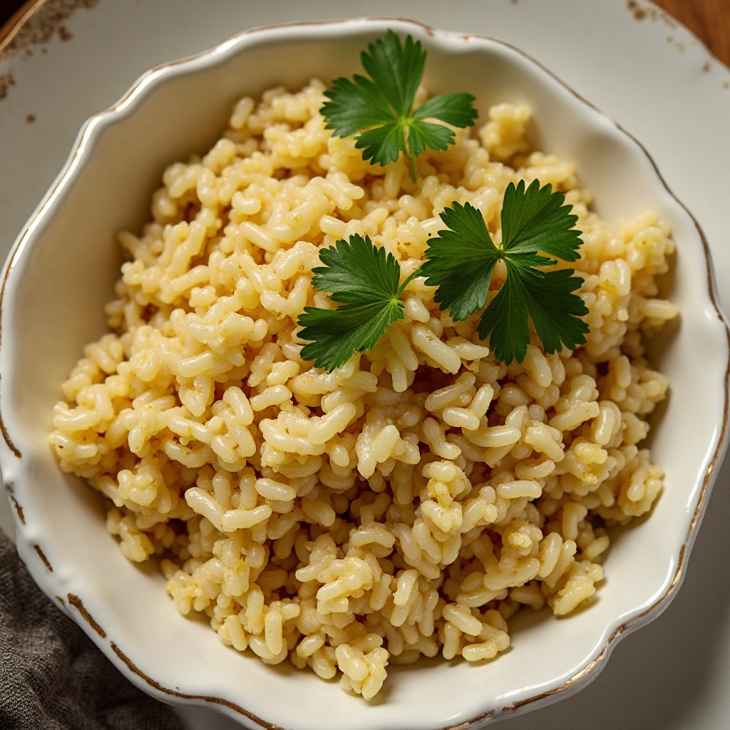 5. Sirve el arroz caliente, decorándolo con perejil fresco picado. Sirve caliente.