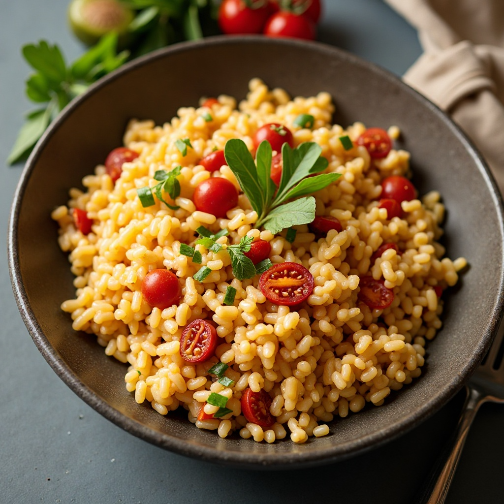 - Vierte el caldo de pollo o vegetariano, asegurando que el arroz esté cubierto. Reducción de fuego a medio-bajo y tapa la sartén, cocinando a fuego lento durante aproximadamente 20 minutos, hasta que el arroz esté cocido y el líquido se haya absorbido.