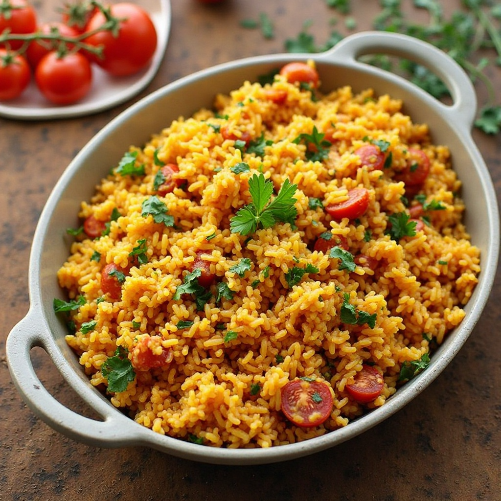 El arroz basmati es una opción saludable debido a su bajo contenido en grasas y sodio. Los tomates y los pimientos aportan vitaminas A y C, mientras que las especias como el comino y la cúrcuma ofrecen beneficios antioxidantes. Este plato puede ajustarse para cumplir con dietas bajas en sal o en grasa, adaptándose así a las necesidades nutricionales de cada persona.