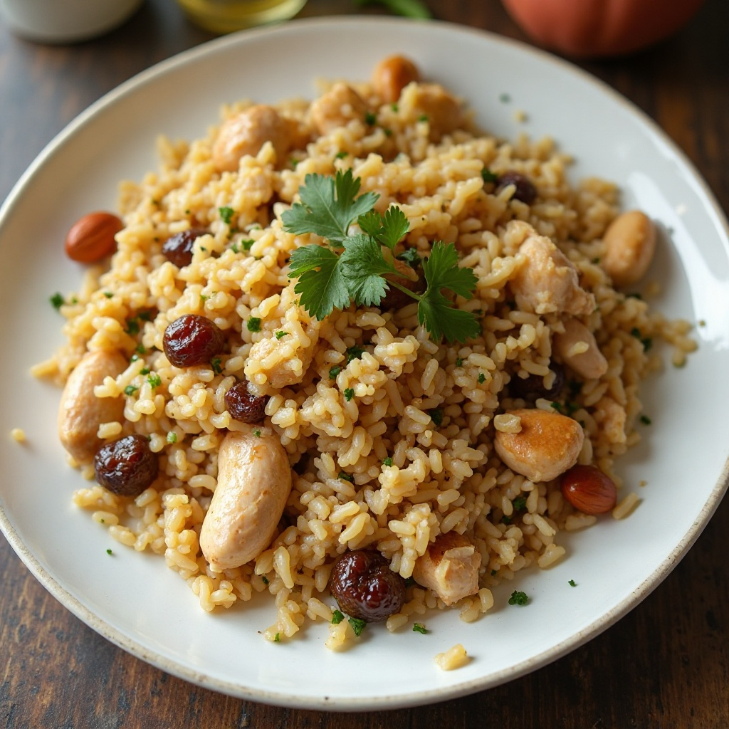 Receta de Arroz Pilaf de Pollo con Pasas y Almendras