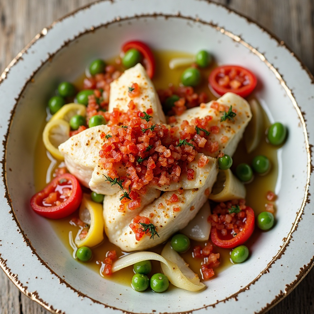 El bacalao a la vizcaína es un clásico de la cocina vasca que se caracteriza por su sencillez y sabor único. En Santurtzi, una ciudad costera del País Vasco, esta receta se disfruta tanto como plato principal como entrada. Esta versión está adaptada para aquellos que prefieren una versión más ligera o saludable sin perder el sabor característico.