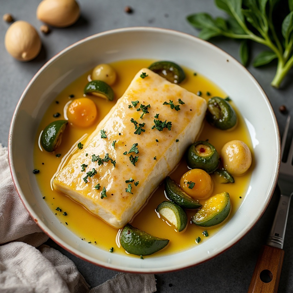El bacalao al pil-pil es un clásico de la gastronomía del País Vasco, España. Este plato utiliza técnicas tradicionales de cocción que hacen que el aceite se espese y forme una textura cremosa, creando una salsa rica y deliciosa. Aquí presentamos una versión con patatas y pimientos para complementar su sabor y textura.