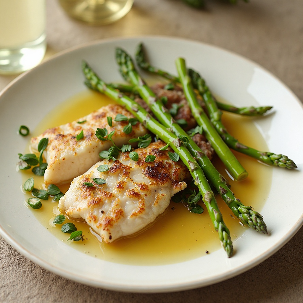 Este plato ofrece una buena cantidad de proteínas y es una opción saludable si se elige un vino verde sin exceso de azúcares. El perejil añade un toque de antioxidantes, mientras que las patatas y los espárragos proporcionan vitaminas esenciales.