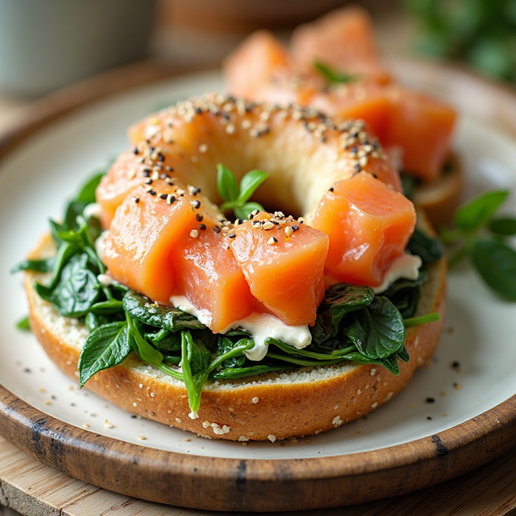Receta de Bagels con Salmón ahumado y Espinacas Frescas