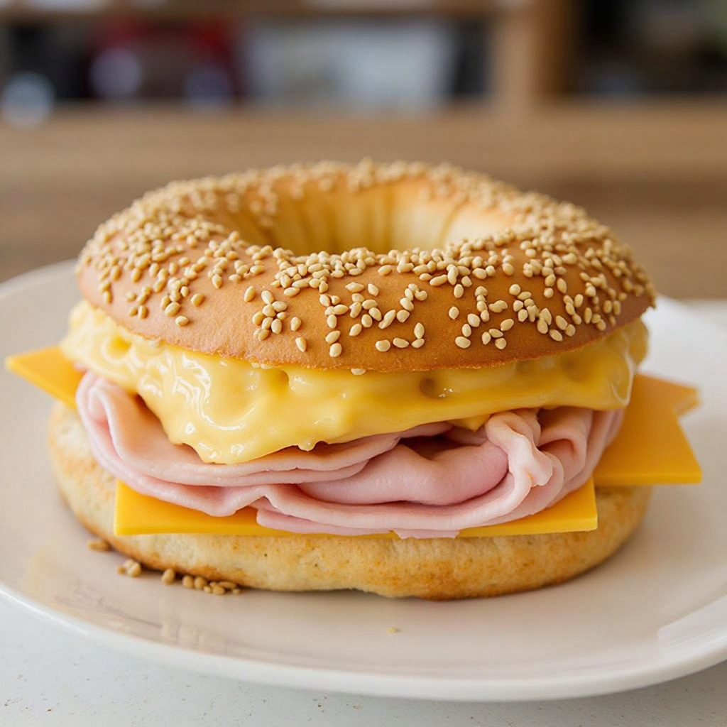 El bagel ha sido parte del desayuno americano desde que inmigrantes judíos lo trajeron a Estados Unidos en el siglo XIX. La versión con jamón y queso cheddar es una adaptación popular que refleja la cocina americana y su amor por los sabores fuertes y satisfactorios. En Lakewood, Nueva Jersey, este bagel ha encontrado su lugar como un desayuno reconfortante que invita a recordar tiempos nostálgicos de la costa este.