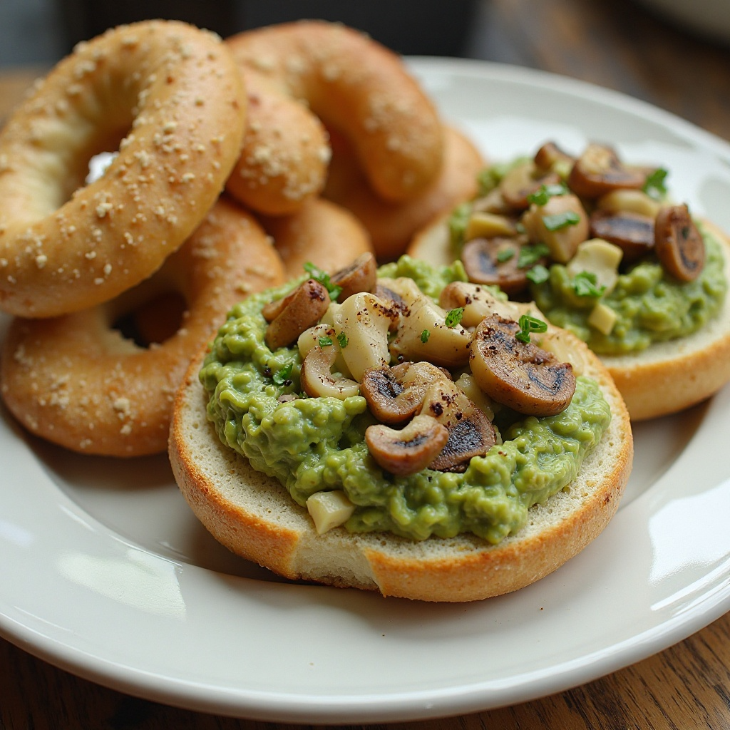 Receta de Bagels de Nueva York con Salsa de Aguacate y Champiñones para Parque Slope, Nueva York