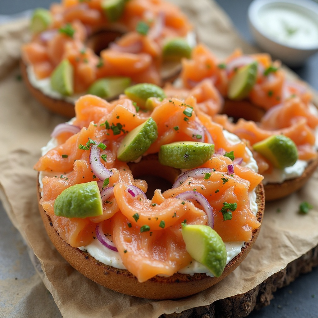 Este bagel de salmón es una opción balanceada que combina proteínas saludables del salmón, grasas benéficas del aguacate y la crema agria, y fibra de los bagels. Es ideal para aquellos que buscan un desayuno ligero pero satisfactorio. Para aumentar aún más su valor nutricional, considera usar pan integral para los bagels o agregar vegetales adicionales al relleno.