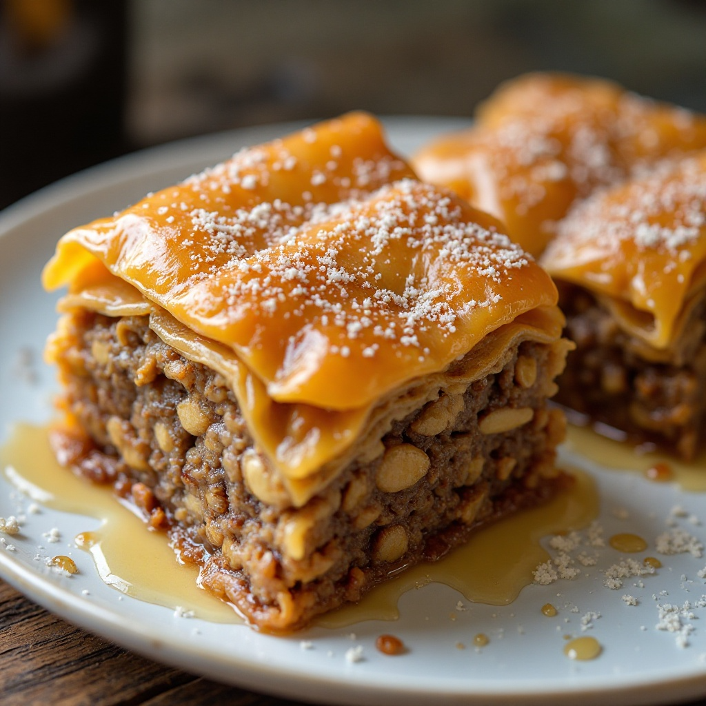 Baklava es un postre delicioso y tradicionalmente muy dulce, originario del Medio Oriente. En Doboj, una región de Bosnia y Herzegovina conocida por sus influencias culturales otomanas y austriacas, se prepara una versión única de baklava que combina sabores locales con la rica tradición de este dulce. Este plato es perfecto para ocasiones especiales o simplemente para disfrutar en familia y amigos.