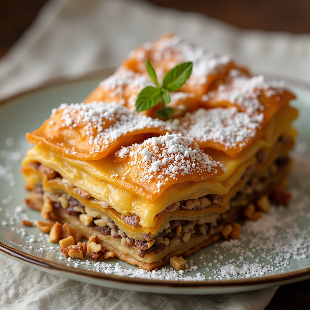 6. Para un acabado dorado, puedes añadir azúcar impalpable sobre las capas superiores antes de hornear.