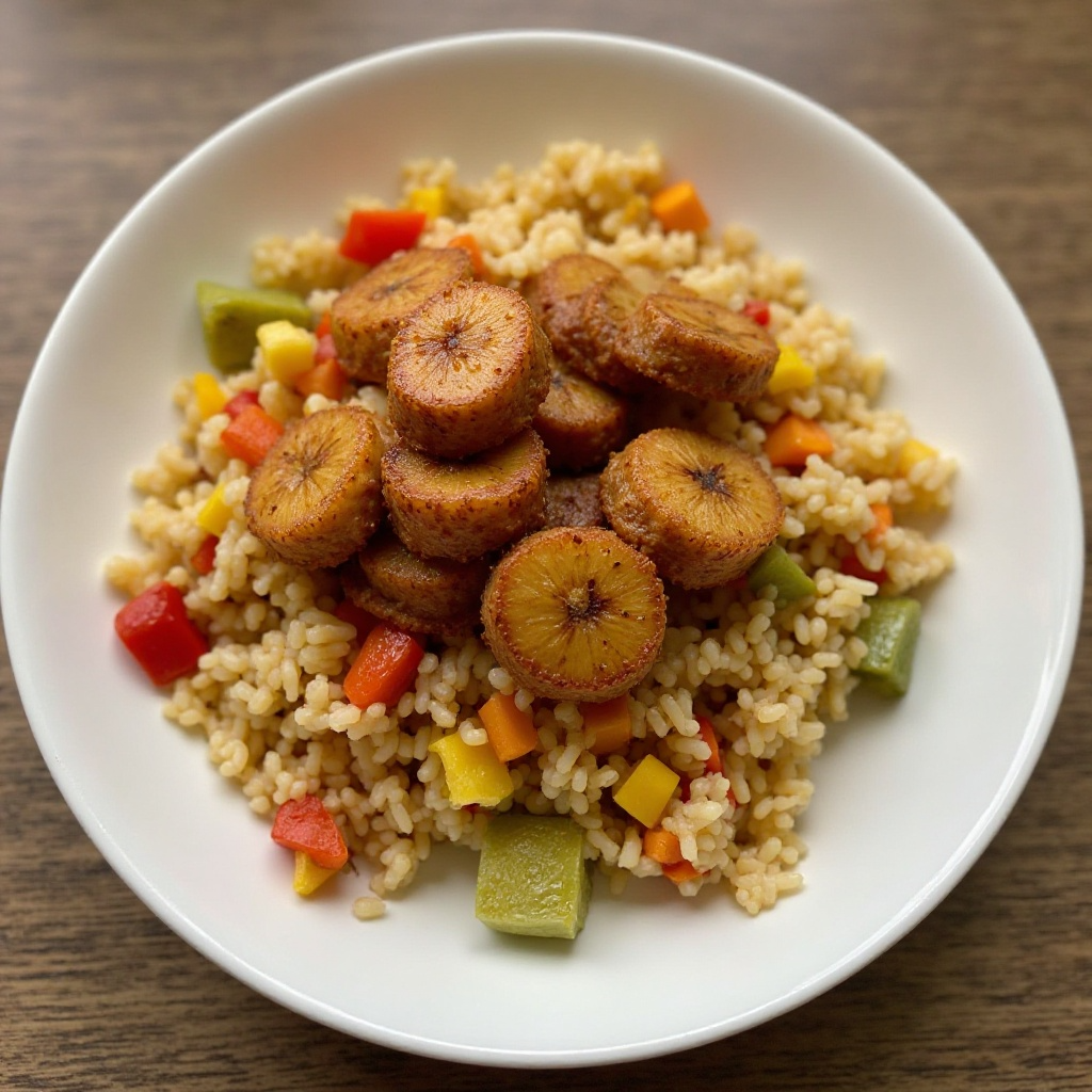 El «Banana Frita y Arroz Congri» es un plato que refleja la diversidad culinaria de Burundi. Los plátanos son un ingrediente básico en muchas recetas africanas, aportando un toque dulce a platos salados. En el contexto de Ngozi, esta receta podría ser adaptada para incluir restricciones alimenticias específicas, manteniendo el equilibrio de sabores que caracteriza a la cocina de Burundi.