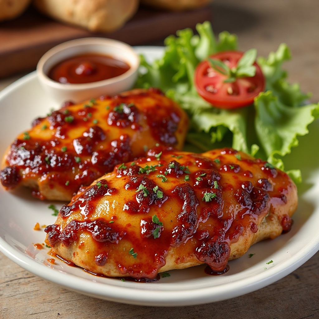 - Sirve el pollo junto con la salsa de barbacoa, decorando con hojas de lechuga si lo deseas. Sirve con pan casero o panecillos para una experiencia auténtica.